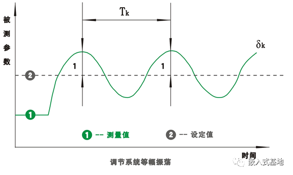 一個(gè)調(diào)節(jié)系統(tǒng),在階躍干擾作用下,出現(xiàn)既不發(fā)散也不衰減的等幅震蕩過程,此過程成為等幅振蕩過程,如下圖所示。此時(shí)調(diào)節(jié)器的比例度為臨界比例度δk,被調(diào)參數(shù)的工作周期為為臨界周期Tk