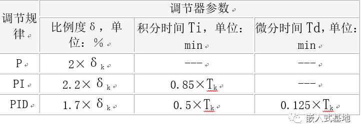 臨界比例度法PID參數(shù)整定經(jīng)驗(yàn)公式