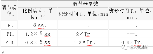 2、根據(jù)δs和Ts值按以下公式計(jì)算出調(diào)節(jié)器整定參數(shù)