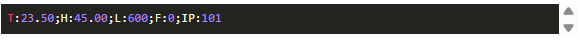 Arduino Leonardo處理本地傳感和數(shù)據(jù)準(zhǔn)備。它讀取溫度,濕度(DHT11),光(光敏電阻),火焰(數(shù)字傳感器)和模擬溫度。每隔1分鐘,它構(gòu)建一個(gè)結(jié)構(gòu)化的串行幀,如下所示: