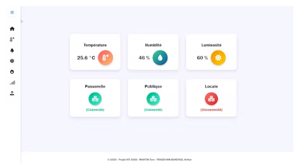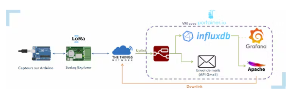 SerVision是一種緊湊高效的基于LoRa的物聯(lián)網(wǎng)系統(tǒng),用于監(jiān)控服務(wù)器機(jī)房的關(guān)鍵環(huán)境參數(shù)。它通過(guò)使用物聯(lián)網(wǎng)(TTN)將實(shí)時(shí)數(shù)據(jù)傳輸?shù)街醒肫脚_(tái),確保及早發(fā)現(xiàn)潛在風(fēng)險(xiǎn),如過(guò)熱、濕度峰值或火災(zāi)。收集到的數(shù)據(jù)將被存儲(chǔ)、可視化,并用于在超過(guò)閾值時(shí)觸發(fā)警報(bào)。我們?cè)赨nilasalle Amiens進(jìn)行了這個(gè)項(xiàng)目。