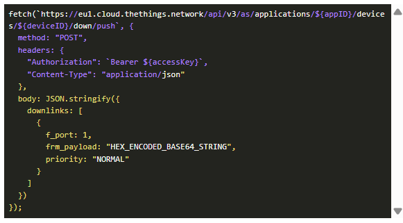 從我們的web界面,用戶(hù)可以配置3個(gè)不同的IP地址進(jìn)行ping測(cè)試。這些ip被轉(zhuǎn)換成十六進(jìn)制,然后用Base64編碼,并通過(guò)TTN v3 HTTP API發(fā)送給TTN: