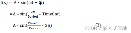 公式(3)是一種典型的數(shù)據(jù)離散歸一的處理方法,具體的意義我們可以理解為在一個運動周期內(nèi)每隔5ms(5ms中斷)取點,映射到2π的范圍上,記錄對應(yīng)點位移隨著時間在A范圍內(nèi)正弦函數(shù)周期性變化情況;