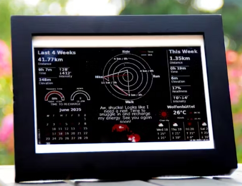 這個(gè)項(xiàng)目始于一個(gè)簡(jiǎn)單的想法:如果我能把我的Strava和Garmin數(shù)據(jù)融合在一起,并且總是可見(jiàn),就像我桌子上的相框一樣,會(huì)怎么樣?