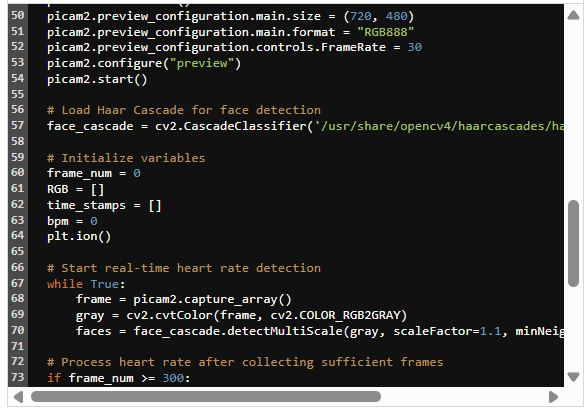 心率計(jì)算:結(jié)合了CHROM算法(減少面部運(yùn)動(dòng)的“噪音”,比如細(xì)微的頭部運(yùn)動(dòng))和FFT(快速傅立葉變換)(通過(guò)分析rPPG信號(hào)的頻率,將其轉(zhuǎn)換為心率讀數(shù))。