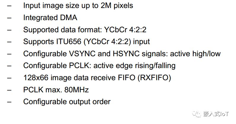 數(shù)據(jù)輸出為攝像頭拍攝的圖傳到主控芯片,所有要有data、行場同步和時(shí)鐘號。CMOS接口的圖像傳感器芯片可以感知外部的視覺信號并將其轉(zhuǎn)換為數(shù)字信號并輸出。