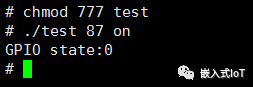 執(zhí)行echo out > /sys/class/gpio/gpio87/direction表示設(shè)置該GPIO為輸出,最后向GPIO寫值即可。