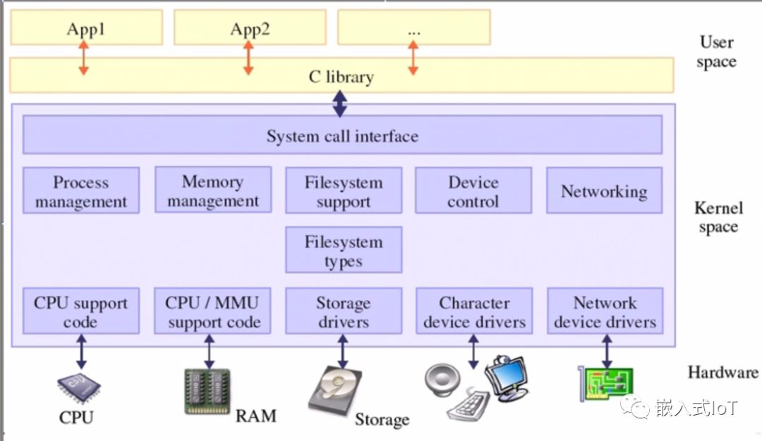 Linux的操作系統(tǒng)分為內(nèi)核態(tài)和用戶態(tài),內(nèi)核態(tài)完成與硬件的交互,比如讀寫內(nèi)存,硬件操作等。用戶態(tài)運行上層的程序,比如Qt等。分成這兩種狀態(tài)的原因是即使應(yīng)用程序出現(xiàn)異常,也不會使操作系統(tǒng)崩潰。