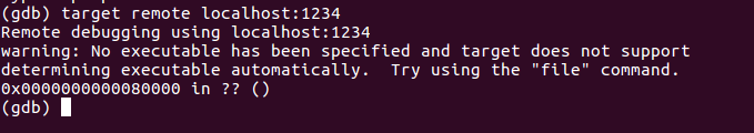 等待連接操作,然后輸入target remote localhost:1234連接