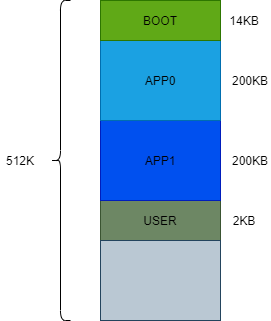 所以可以這樣理解,APP0作為運行分區(qū),APP1作為升級分區(qū),當升級分區(qū)的標志置位時,將升級分區(qū)的代碼放到運行分區(qū)中執(zhí)行。