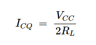 為了獲得最大擺幅,我們選擇偏置點(diǎn)(ICQ和VCEQ)位于交流負(fù)載線的中間。ICQ是靜態(tài)集電極電流: