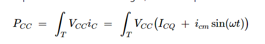 傳遞給負(fù)載的功率有兩個(gè)組成部分:來自偏置電流的直流功率和我們希望最大化的交流功率。由于我們知道集電極的峰值交流電流(ic,max),我們可以計(jì)算傳遞到負(fù)載的交流功率的平均值,如下所示: