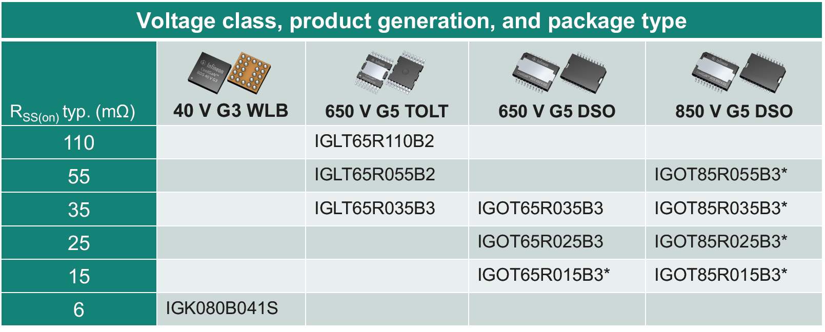 圖9:2025年的CoolGaN?雙向開關(guān)(BDS)產(chǎn)品系列;標(biāo)注 * 的型號為在研產(chǎn)品。