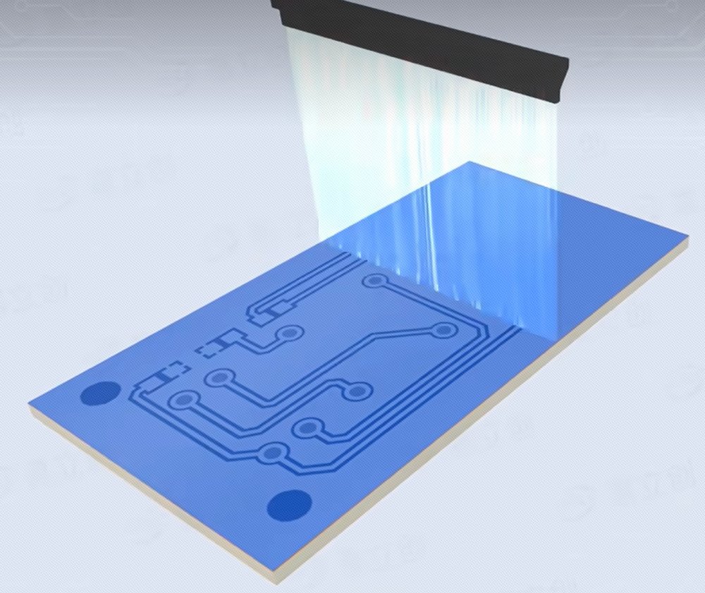 把生產(chǎn)資料轉(zhuǎn)移到覆銅板上,就是把PCB設(shè)計(jì)的圖形轉(zhuǎn)移到電路板上。實(shí)際操作是板材覆蓋一層藍(lán)色的薄膜