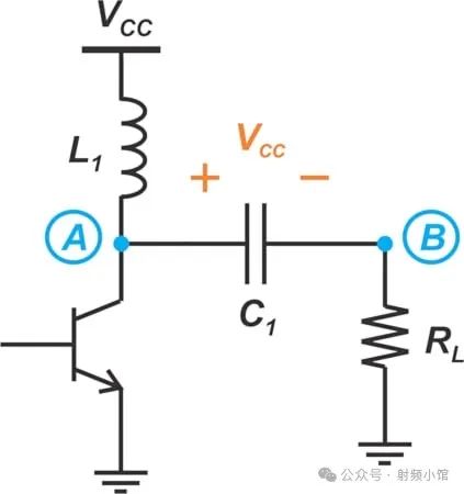 但是,感性加載的級別如何提供比其供電電壓更大的電壓擺幅呢?一個可能的解釋是,節(jié)點A處的直流電壓等于VCC,因為電感在直流時是短路。RFC僅攜帶直流電流,其值由連接到晶體管基極的偏置電路確定(圖中未顯示)。由于電感不能通過交流電流,晶體管的交流電流僅通過RL。