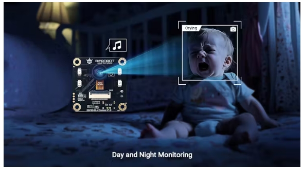 ESP32-S3 AI camera上的廣角紅外攝像頭,結(jié)合紅外照明和光傳感器,即使在低光或完全黑暗的情況下,也能確保出色的圖像清晰度。無(wú)論白天還是夜晚,ESP32-S3 AI Camera都能保證監(jiān)控畫(huà)面的穩(wěn)定性和清晰度,為安防和監(jiān)控系統(tǒng)提供可靠的支持。