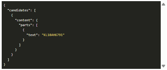 每個(gè)圖像都是base64編碼的,并作為HTTP POST請(qǐng)求的一部分發(fā)送給Gemini API,并提示它檢測(cè)車(chē)輛的車(chē)牌。