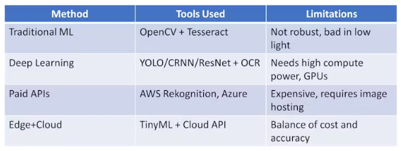 Gemini API是自動(dòng)車(chē)牌識(shí)別(ANPR)系統(tǒng)的智能核心。雖然ESP32-S3 AI相機(jī)可以捕獲高質(zhì)量的圖像,但它缺乏準(zhǔn)確執(zhí)行光學(xué)字符識(shí)別(OCR)和解釋復(fù)雜圖像數(shù)據(jù)所需的計(jì)算能力和深度學(xué)習(xí)模型。Gemini通過(guò)使用其強(qiáng)大的多模式功能來(lái)分析圖像、理解內(nèi)容和提取車(chē)牌文本,填補(bǔ)了這一空白。與傳統(tǒng)的OCR庫(kù)不同,Gemini利用先進(jìn)的視覺(jué)語(yǔ)言模型健壯而靈活地執(zhí)行這項(xiàng)任務(wù)——所有這些都來(lái)自一個(gè)簡(jiǎn)單的API請(qǐng)求。它只需一個(gè)HTTP調(diào)用就可以將原始圖像轉(zhuǎn)換為可操作的洞察(車(chē)牌),使其成為低功耗邊緣設(shè)備的理想選擇。