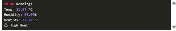 打開Serial Monitor:進入Tools > Serial Monitor,設(shè)置波特率為9600。您將看到實時溫度、濕度和熱指數(shù)日志——這對調(diào)試很有幫助