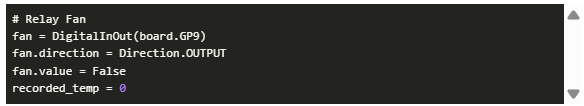 要使用風(fēng)扇,我將Gp9引腳綁定為DigitalInOut引腳,當(dāng)該引腳值為1時(shí),風(fēng)扇將打開(kāi),如果不是,則風(fēng)扇將關(guān)閉。