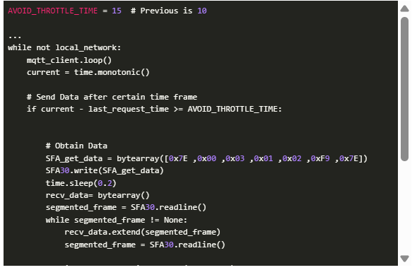 由于現(xiàn)在我們希望SFA30自動(dòng)記錄變量,而不是僅在調(diào)用SFA30端點(diǎn)時(shí)執(zhí)行計(jì)算,因此我們將SFA30端點(diǎn)中負(fù)責(zé)檢索數(shù)據(jù)的代碼移到一個(gè)函數(shù)中,當(dāng)服務(wù)器在線時(shí),我們將在該函數(shù)中調(diào)用每個(gè)循環(huán)。