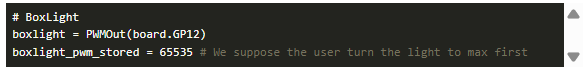由于這兩種硬件的工作方式不同,最簡(jiǎn)單的解決方案是將我的光更改為PWM輸出的另一片,即引腳GP12。