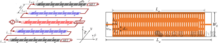 均勻型漏波天線通過在低損耗傳輸線上連續(xù)加載輻射元件實現(xiàn)輻射,通常選擇空間諧波中的基模作為波束掃描模式。然而,其波束輻射范圍往往局限于前向特定區(qū)域。隨著超材料技術(shù)的發(fā)展,基于復(fù)合左右手(CRLH)傳輸線的新型漏波天線結(jié)構(gòu)被提出,通過在傳輸線上引入左手性質(zhì)的串聯(lián)電容與并聯(lián)電感,成功擴展了波束掃描范圍至后向區(qū)域,為漏波天線設(shè)計提供了新的思路。