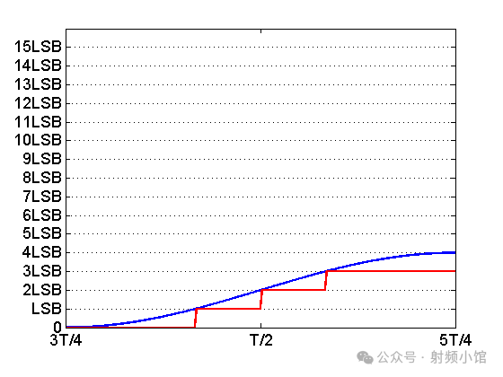 圖1. 應(yīng)用于ADC的模擬信號(藍(lán)色)及其階梯近似(紅色)。