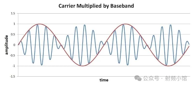 你可以清楚地看到基帶信號(hào)(紅色)與載波振幅(藍(lán)色)之間的關(guān)系。