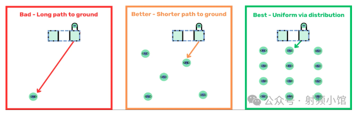 接地為電信號提供穩(wěn)定的參考點。通過長軌跡或質量不佳的銅平面連接到接地平面會直接引入不必要的寄生效應。