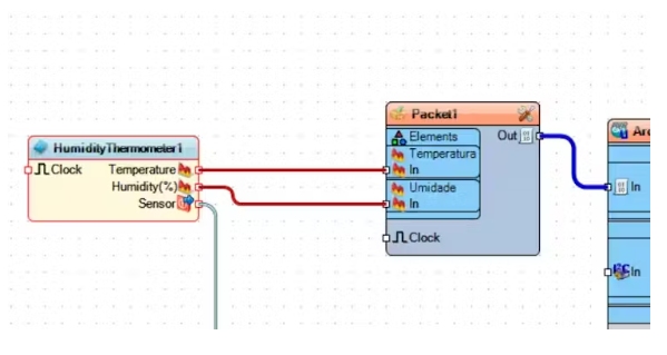 關(guān)閉Elements窗口,如圖所示在DHT11組件和數(shù)據(jù)包之間建立連接: