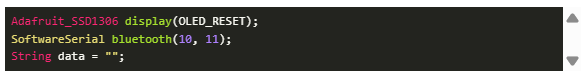 對(duì)象創(chuàng)建:使用復(fù)位引腳為OLED顯示器創(chuàng)建對(duì)象顯示,并在引腳10和11上為軟件串行通信創(chuàng)建對(duì)象藍(lán)牙。