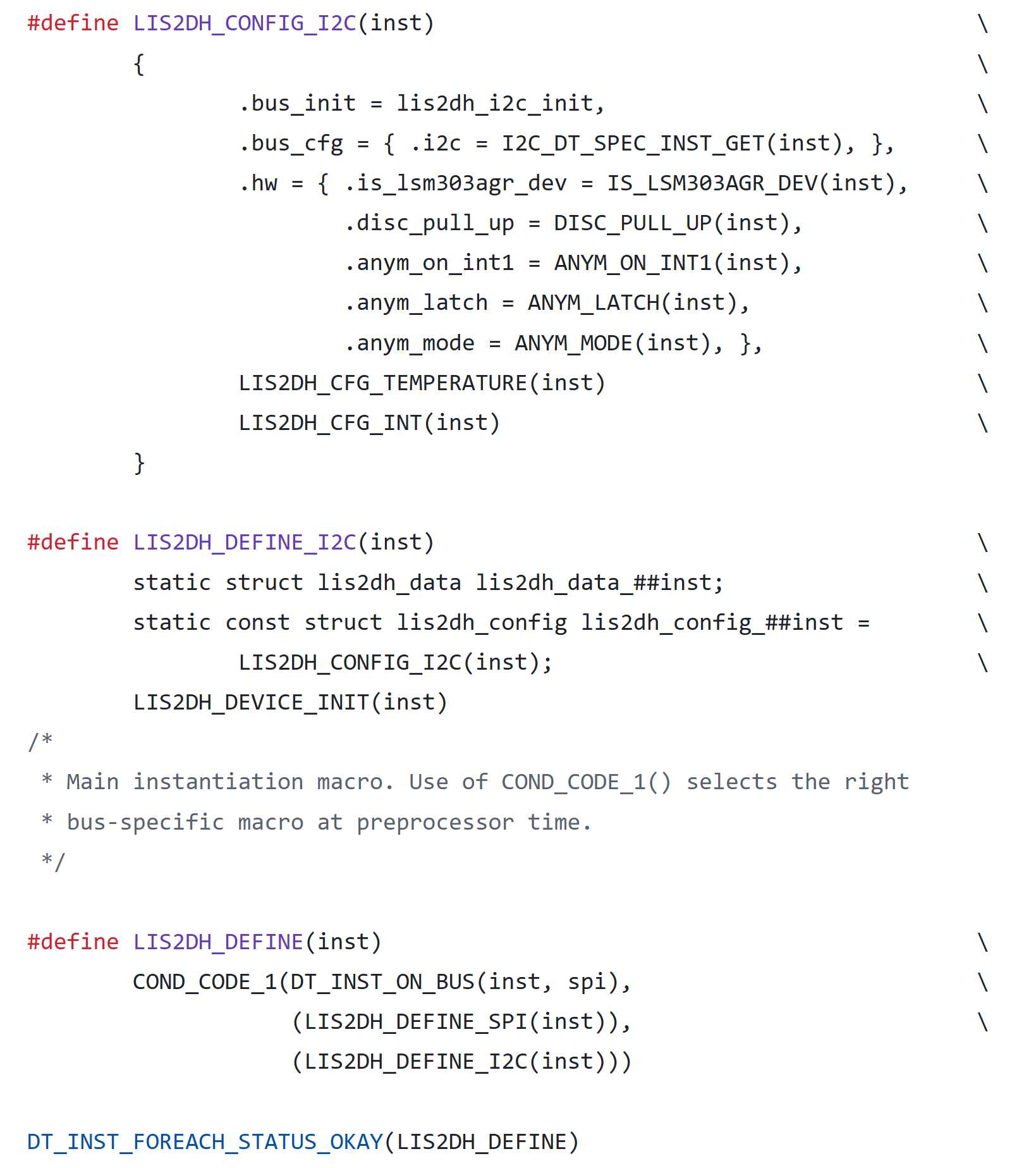 Figure 19. lis2dh device driver initialization code (source: Zephyr on GitHub)