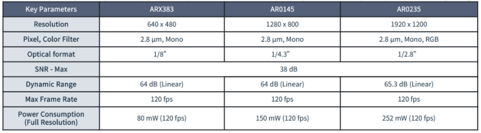 表 2.Hyperlux 圖像傳感器系列 - 產(chǎn)品詳細(xì)比較