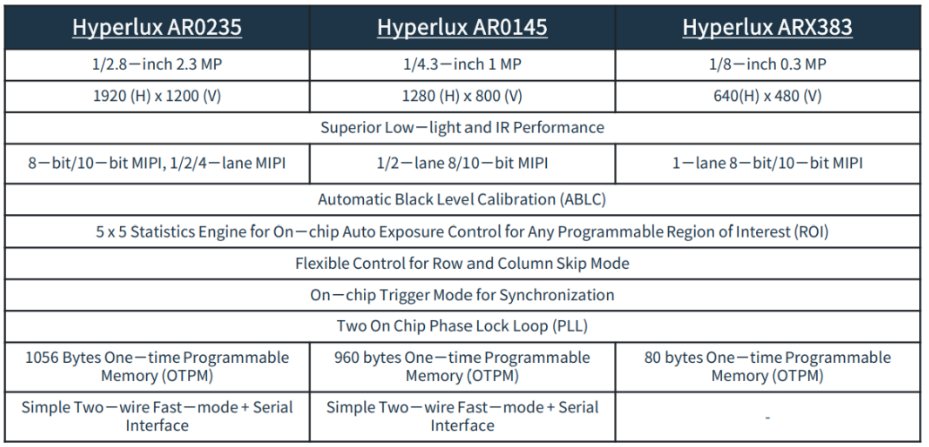 Hyperlux 圖像傳感器系列關(guān)鍵參數(shù)比較
