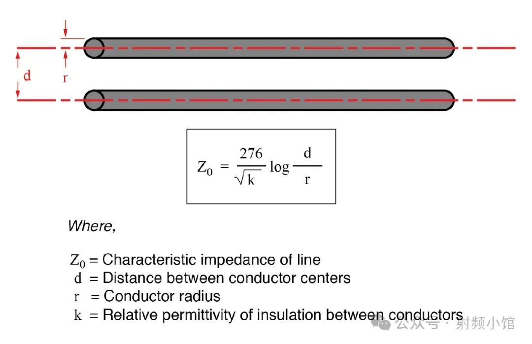 以光速傳播。傳輸線這些相互作用的最終結(jié)果是,通過電池源的電流被限制在有限的幅度。由于導(dǎo)線是無限長(zhǎng)的,它們的分布電容永遠(yuǎn)不會(huì)完全充電到源電壓,它們的分布電感永遠(yuǎn)不會(huì)允許無限的充電電流。換句話說,只要開關(guān)閉合,這兩根導(dǎo)線就會(huì)從源中吸取電流,表現(xiàn)為一個(gè)恒定的負(fù)載。這些導(dǎo)線不再僅僅是電流的導(dǎo)體和電壓的載體,而是構(gòu)成了一個(gè)具有獨(dú)特特性的電路元件。這兩根導(dǎo)線不再是一對(duì)導(dǎo)體,而是一條傳輸線。作為一個(gè)恒定的負(fù)載,傳輸線對(duì)施加的電壓的反應(yīng)是電阻性的,而不是感性的,盡管它完全由電感和電容組成(假設(shè)超導(dǎo)線具有零電阻)。我們之所以這樣說,是因?yàn)閺碾姵氐慕嵌葋砜?,一個(gè)永遠(yuǎn)消耗能量的電阻和一個(gè)永遠(yuǎn)吸收能量的無限傳輸線之間沒有區(qū)別。這條線的阻抗(電阻)以歐姆為單位,稱為特性阻抗,它由兩個(gè)導(dǎo)體的幾何形狀決定。對(duì)于空氣絕緣的平行線,特性阻抗可以這樣計(jì)算: