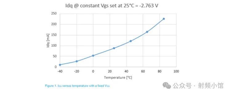 圖 3:在固定 Idq 偏置設(shè)置下典型的 Vgs 變化與溫度關(guān)系曲線