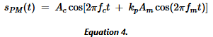 通過將公式1代入運(yùn)算,可立即得出該消息信號(hào)的調(diào)相波表達(dá)式: