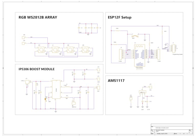 我們的ESP12F是3.3V器件,但是IP5306提供5V,這很容易破壞我們的ESP12F設(shè)置。為了避免這個問題,我們使用了AMS1117 3.3V穩(wěn)壓器,它從IP5306 IC中取出5V并將其降低到3.3V,以便我們的ESP12F設(shè)置可以正常工作。