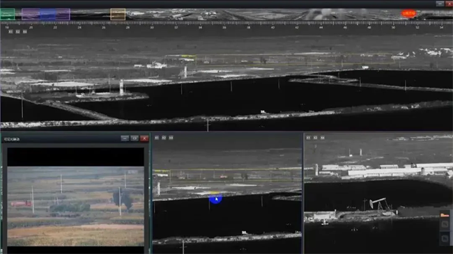 Raythink燧石針對(duì)油田看不見(jiàn)、看不清、看不遠(yuǎn)的安保痛點(diǎn),提供以熱成像技術(shù)為核心的油田周界安防解決方案,制高點(diǎn)部署高清紅外全景雷達(dá),實(shí)現(xiàn)廣域探測(cè),一旦有可疑目標(biāo),聯(lián)動(dòng)雙光譜云臺(tái)追蹤。