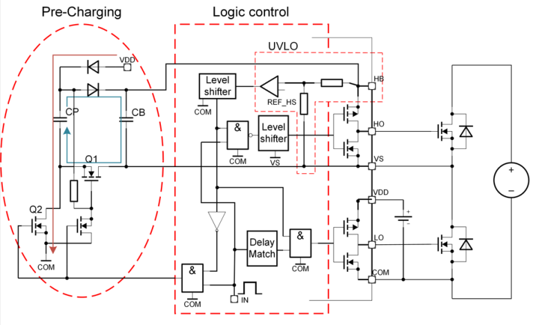 在任何半橋功率級應(yīng)用中,具有正確驅(qū)動器電壓水平的高邊和低邊同步開關(guān)對稱性至關(guān)重要。所提出的系統(tǒng)方法,結(jié)合了預(yù)充電和UVLO控制機制,成功地實現(xiàn)了這一目標(biāo)。