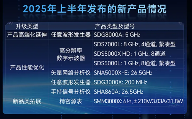 產品創(chuàng)新方面,2025上半年鼎陽共發(fā)布8款新產品,包括任意波形發(fā)生器SDG8000A、SDG3000X;高分辨率數(shù)字示波器SDS7000L、SDS5000X HD、SDS5000L;矢量網絡分析儀SNA5000X-E;手持信號分析儀SHA860A;精密源表SMM3000X,這些新品的發(fā)布不僅完善了公司產品矩陣,更進一步強化了在高端測試測量儀器領域的技術優(yōu)勢。