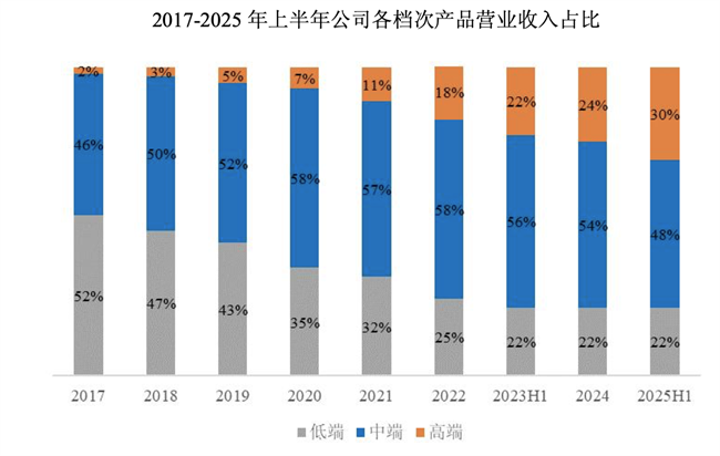 此外,本期內鼎陽科技高端產品營業(yè)收入占比提升至30%,高端產品營業(yè)收入同比增長71.92%,其中銷售單價5萬元以上的產品銷售額同比增長69.61%,銷售額單價3萬元以上的產品銷售額同比增長51.37%,標志著公司在高端市場的技術壁壘和品牌認可度持續(xù)強化。