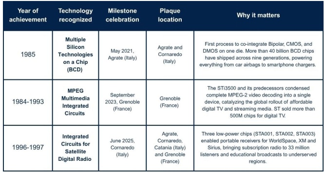 四年斬獲三項IEEE里程碑獎:意法半導(dǎo)體憑什么?