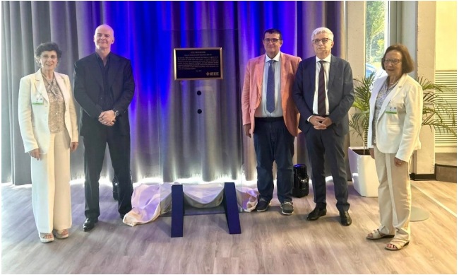 圖為揭牌儀式現(xiàn)場。從左至右:Tiziana Tambosso 博士(IEEE 第 8 區(qū)技術(shù)活動委員會副主席)、Marco Cassis(ST APMS產(chǎn)品部總裁)、Giambattista Gruosso(IEEE 意大利分會主席)、Alessandro Cremonesi(ST 首席創(chuàng)新官)、Bernadette Bouchon-Meunier 博士(IEEE 法國分會終身會員親和小組主席)