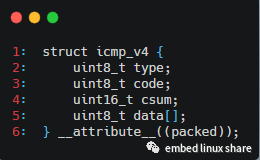 接下來(lái),我們使用結(jié)構(gòu)體來(lái)定義ICMP 報(bào)文,該結(jié)構(gòu)體定義在level-ip的include/icmpv4.h文件中: