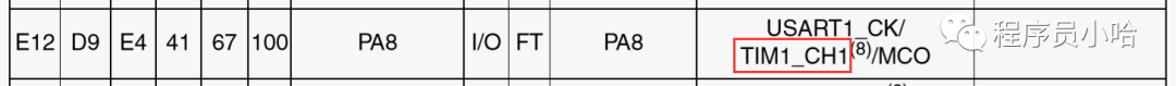 STM32單片機就是標識如下形式:TIMx_CHy這樣的形式,下圖中所示的PWM引腳即占用TIM1的通道1。