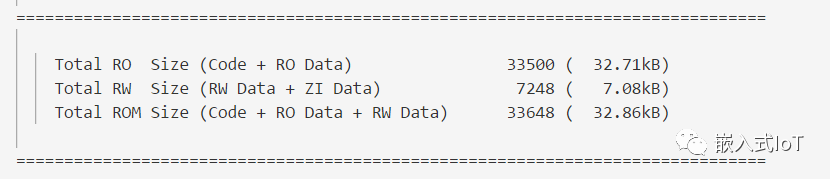 其中RW Data + ZI Data表示總共需要占用的RAM的大小。而Code + RO Data + RW Data表示ROM需要的大小,根據(jù)這兩個值,可以根據(jù)程序合理的選擇相應(yīng)的MCU。