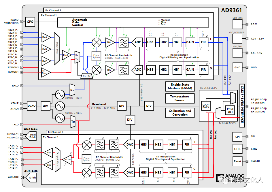 AD9361系統(tǒng)框架如下圖所示: