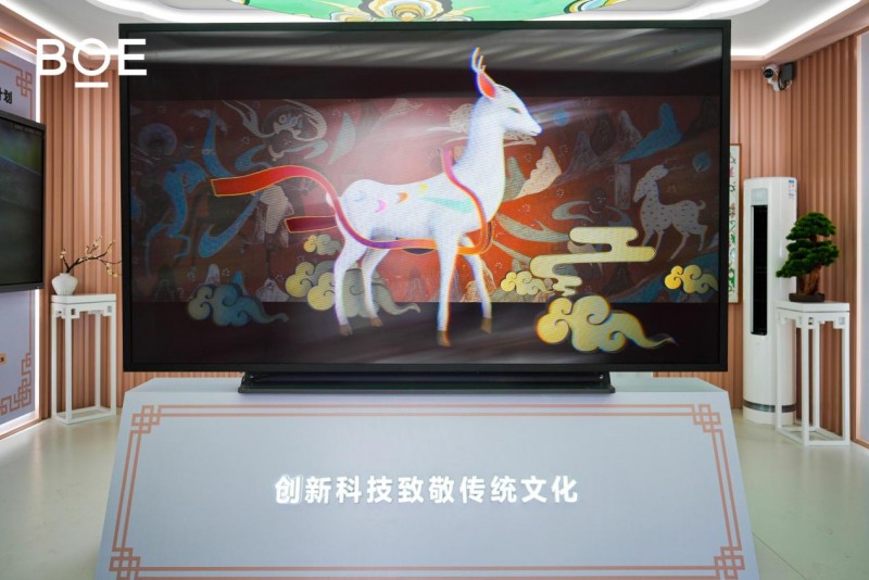 而在「屏」行對話展區(qū)全面展示了BOE(京東方)創(chuàng)新技術(shù)在文化藝術(shù)領(lǐng)域的應(yīng)用,此次BOE(京東方)聯(lián)合敦煌畫院,以現(xiàn)代科技煥活中華優(yōu)秀傳統(tǒng)文化,依托BOE(京東方)8K超高清全真還原解決方案、裸眼3D顯示、無損Gamma顯示專利(專利號:ZL 2016 1 0214546.6)的畫屏等,將燦爛的敦煌壁畫藝術(shù)從敦煌帶到觀眾眼前。不僅如此,多年來BOE(京東方)還與故宮博物院、中國國家博物館、中國美術(shù)館等眾多文化機(jī)構(gòu)展開深度合作,同時在全國多地打造數(shù)字藝術(shù)中心,有力推動文化藝術(shù)產(chǎn)業(yè)的數(shù)字化轉(zhuǎn)型。